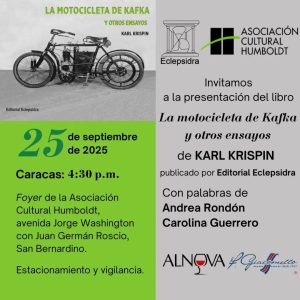 En el marco de la celebración de su 31 aniversario, la Editorial Eclepsidra y la Asociación Cultural Humboldt en Caracas invitan a la presentación del…